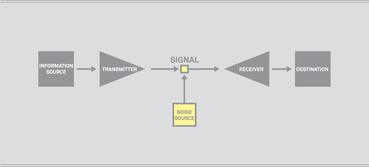 Figure 1. Claude Shannon’s diagram showing a communication channel and its source of channel noise within the signal.